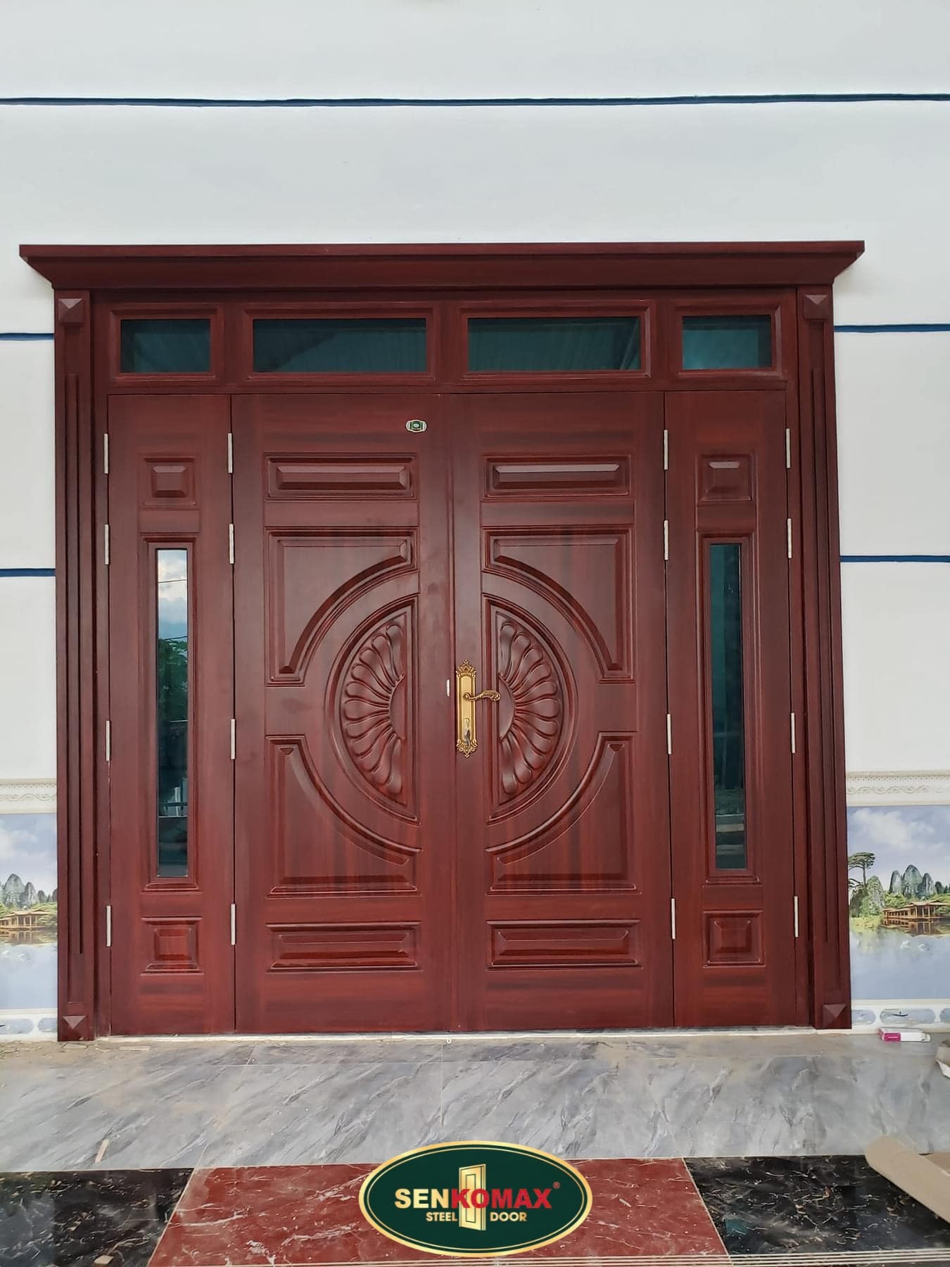 • Cửa thép vân gỗ 4 cánh
